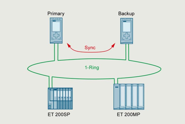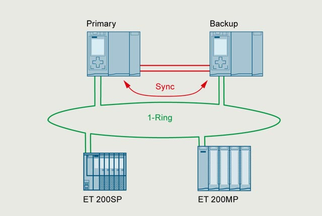 - Both CPUs are connected with the I/O stations via a PROFINET IO ring. Synchronization for the S7-1500R is via this ring, or via separate FOC synchronization cables for the S7-1500H. In the event of a CPU failure, the back-up CPU automatically assumes control of the process. No data is lost and the process can be continued extremely quickly. The PROFINET IO ring ensures that all nodes remain accessible in the event of a fieldbus interruption.